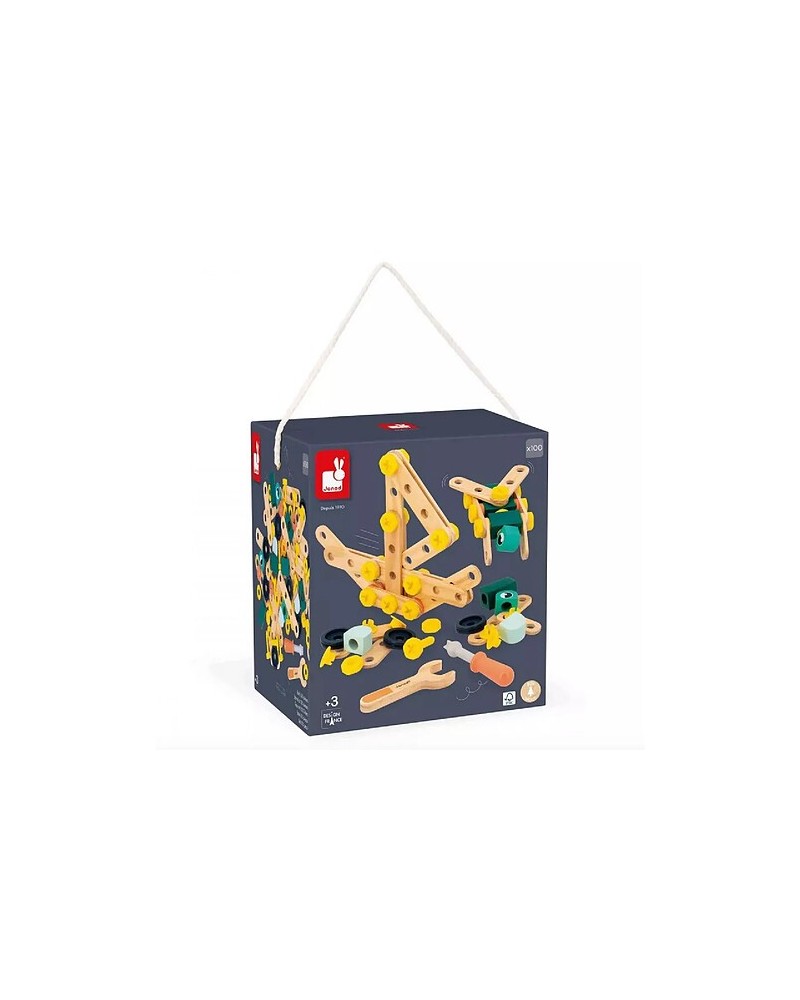 Pour les apprentis bricoleurs, 100 pièces en bois, pour créer une multitude d'inventions !