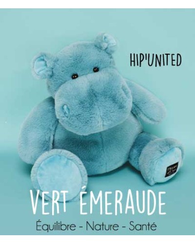 Avec cette collection HIPPO en couleur, le ton est donné: HAPPY, HAPPY ! Extrême douceur apaisante pour de bons petits câlins, bidon généreux, bonne bouille, son humeur est toujours TIP TOP pour avoir le sourire et partager une vraie histoire d'amour avec cet HIPPO HIP'UNITED couleur vert émeraude. Pour jouer, cajoler ou décorer la chambre, c'est un cadeau de naissance idéal.