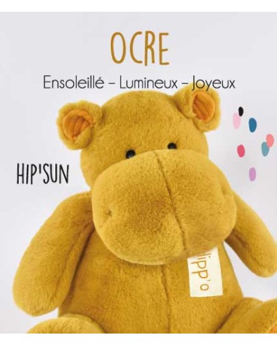 Avec cette belle collection d'HIPPO tout en couleur, le ton est donné: HAPPY, HAPPY ! Extrême douceur apaisante pour de bons petits câlins, bidon généreux, bonne bouille, son humeur est toujours TIP TOP pour donner le sourire. Partagez une vraie histoire d'amour avec cet HIPPO OCRE ensoleillé. Parfait our jouer, cajoler ou décorer la chambre, c'est un cadeau idéal dès la naissance. Lavage à 30°, séchage naturel ou mécanique à basse température.